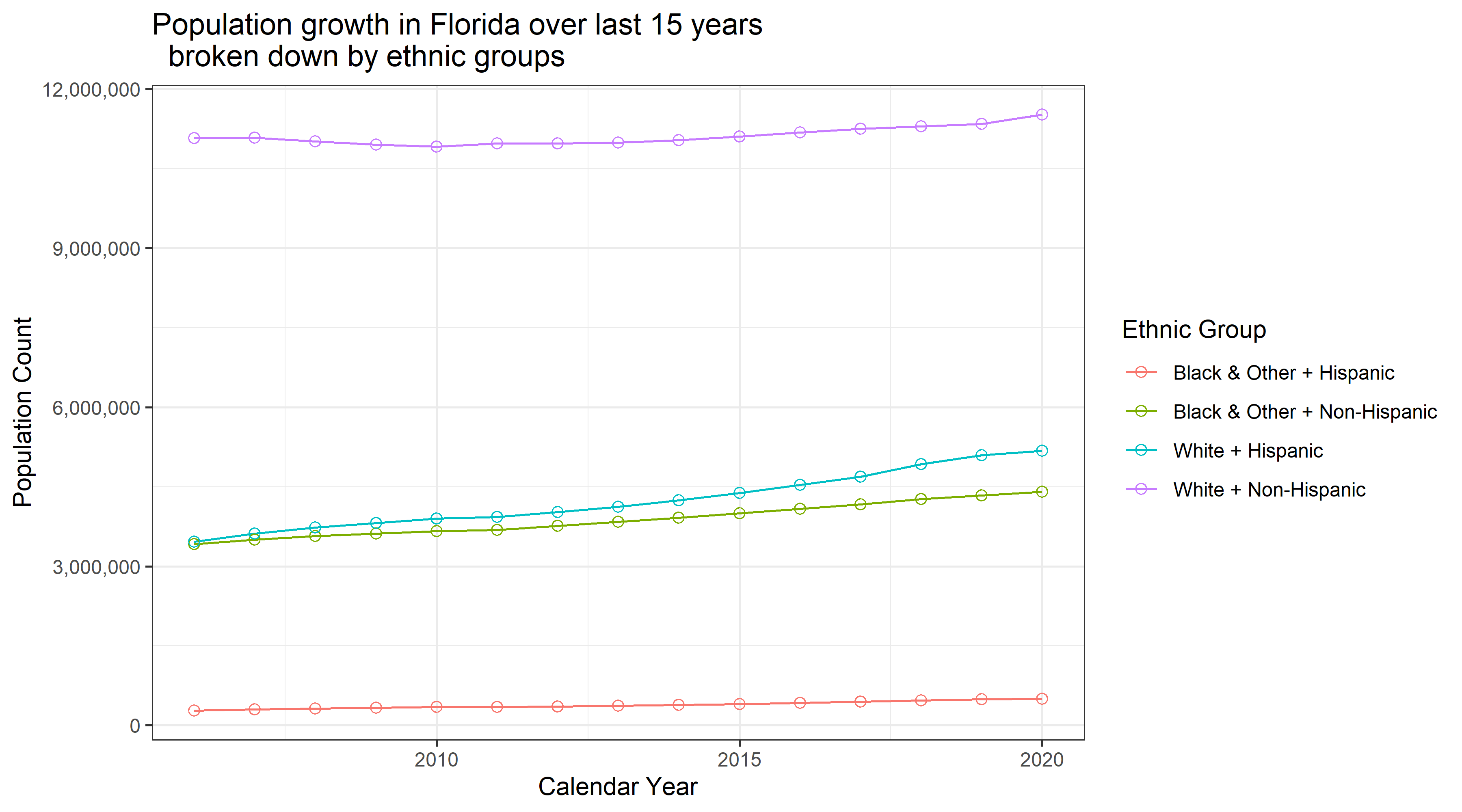 This blogposts shows how to extract population estimates data reported by the Florida Department of Health and prepare them for analysis, specifically, for exploring the trends in demographic growth between 2006 and 2020.
