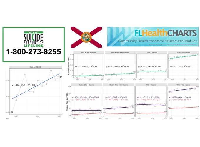 This blogpost graphs the trends of suicides in Florida from 2006 to 2017, exploring the differences in age, sex, and race among persons 10 years and older.