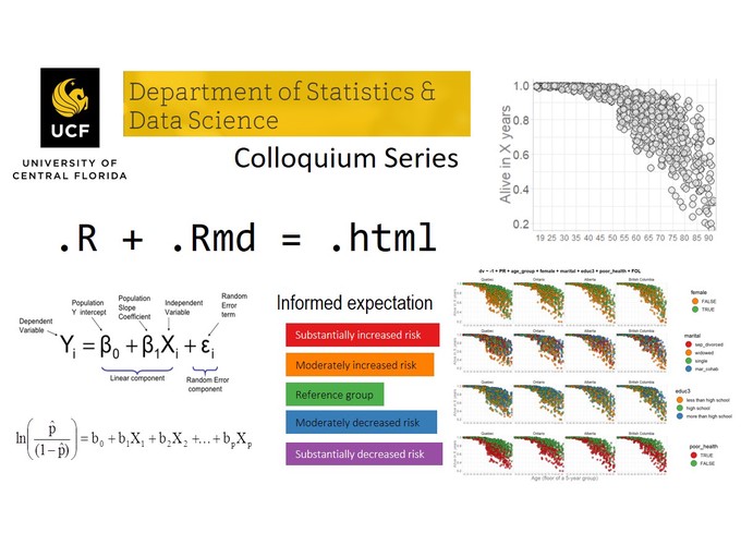 The system evaluates synthetic socioeconomic and mortality data with logistic regression. The data was prepared for the hackathon by Statistic Canada and represents Canadian population. First, I will introduce a visualisation technique that uses color to create a meaningful expectations from the results of a logistic regression. Then I will discuss the workflow of the project that implements this graphing system ( github.com/andkov/ipdln-2018-hackathon ). I will conclude by building the case to prefer reproducible workflows with version control over computational notebooks (e.g. Jupyter, R Notebook).